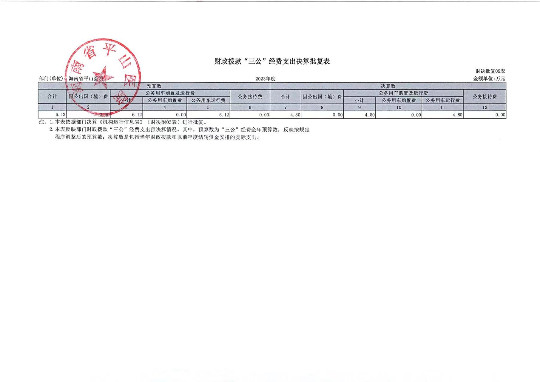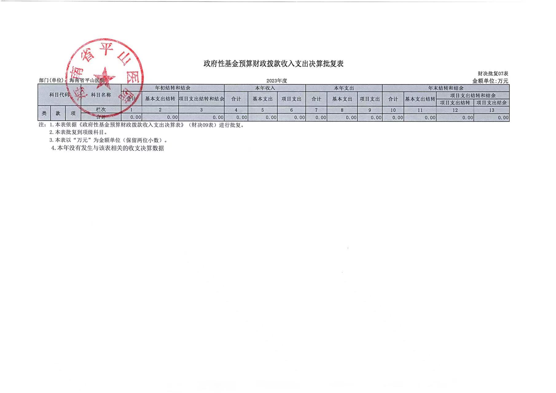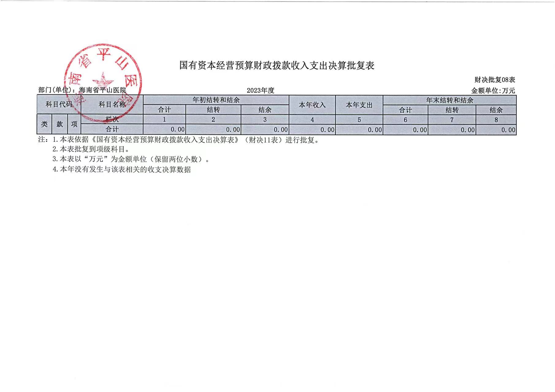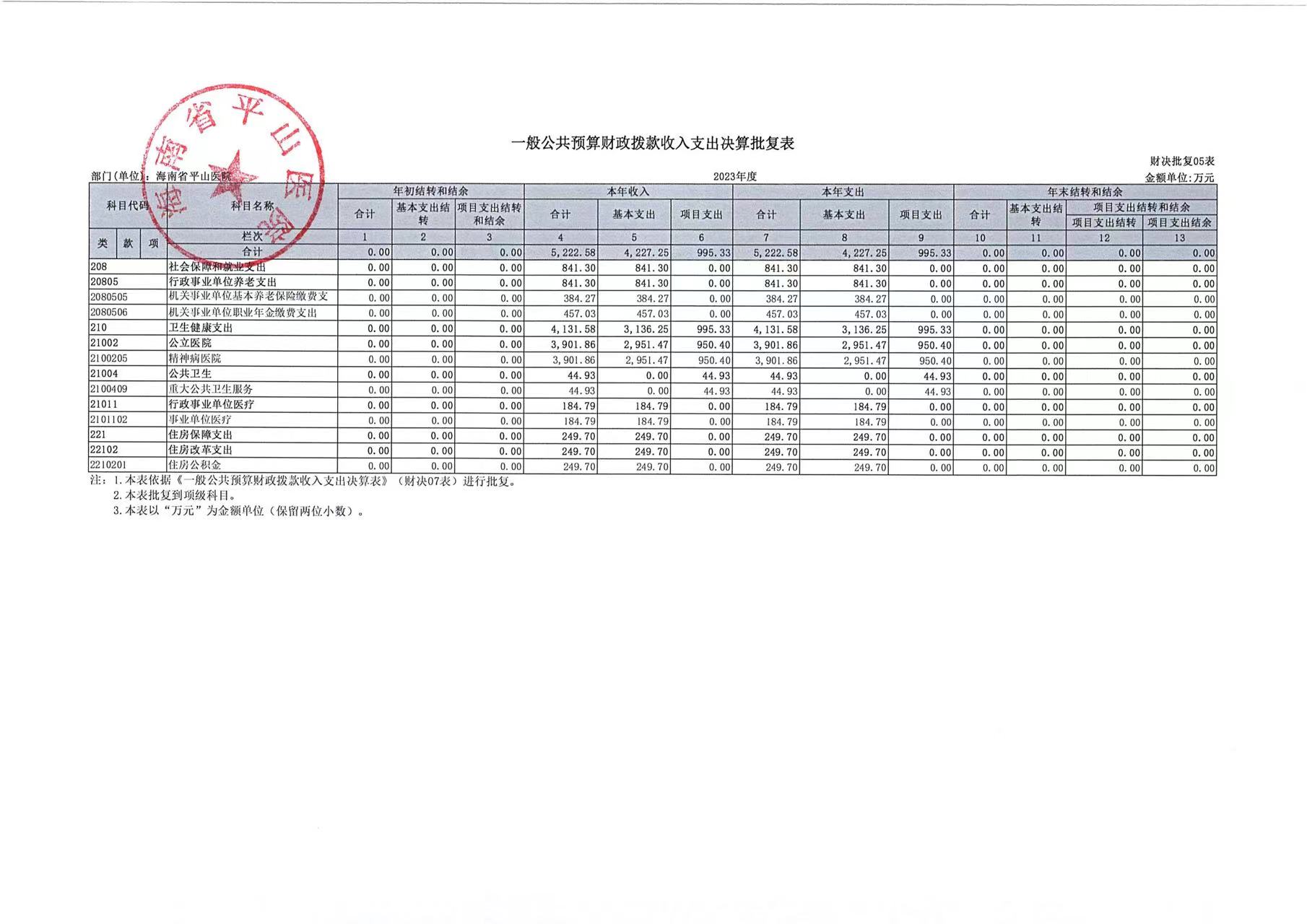 海南省平山医院2023年度部门决算公开报告