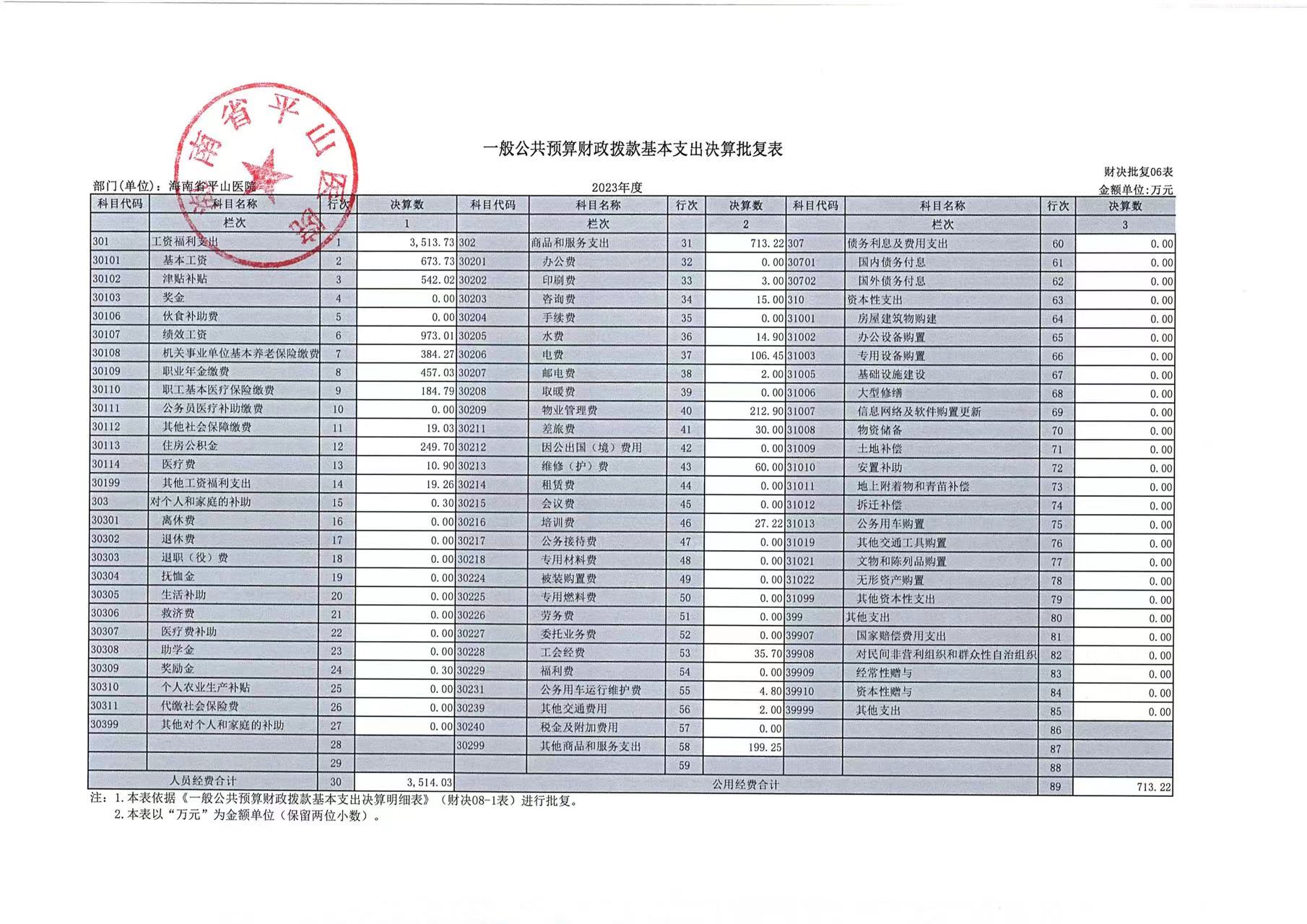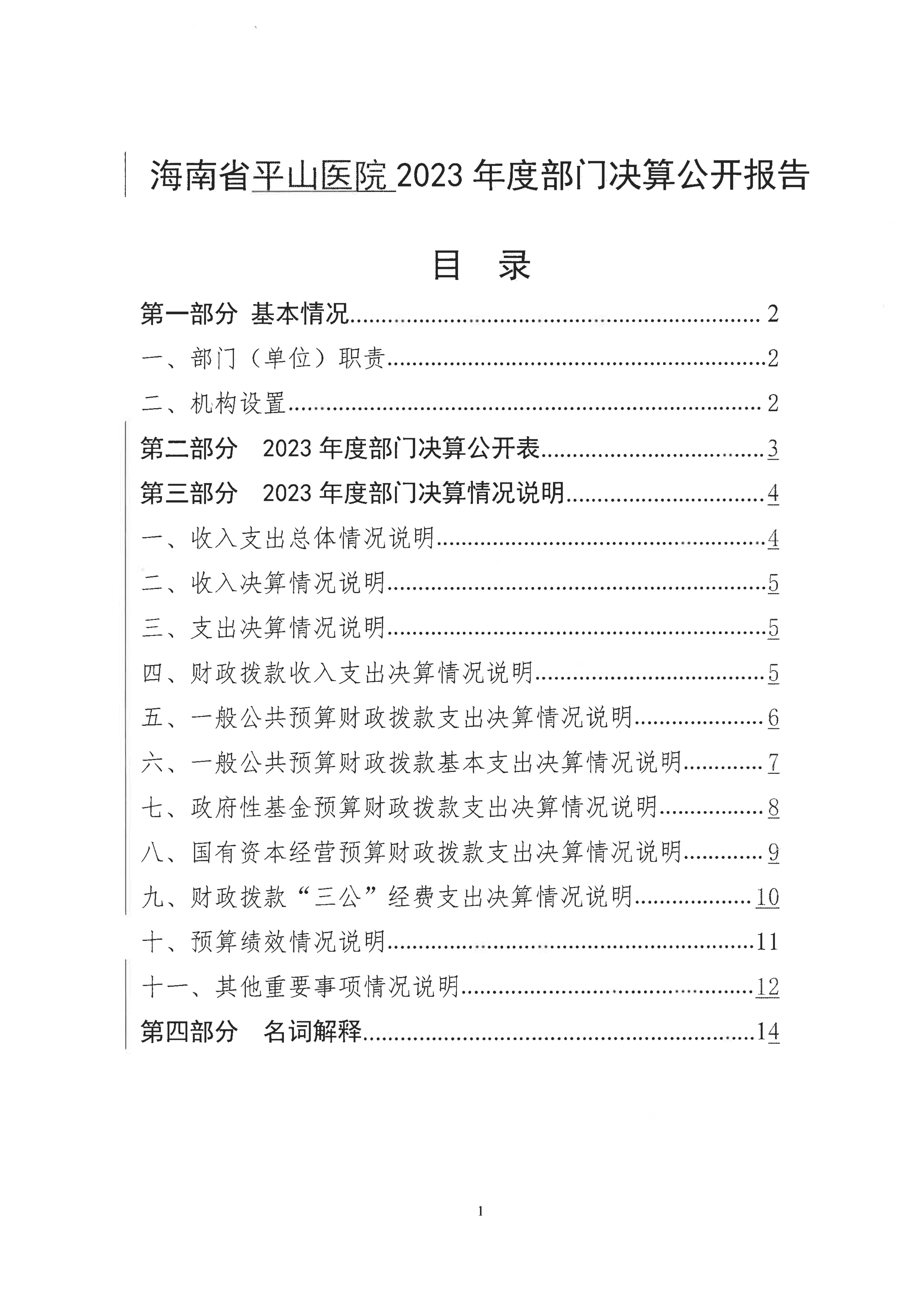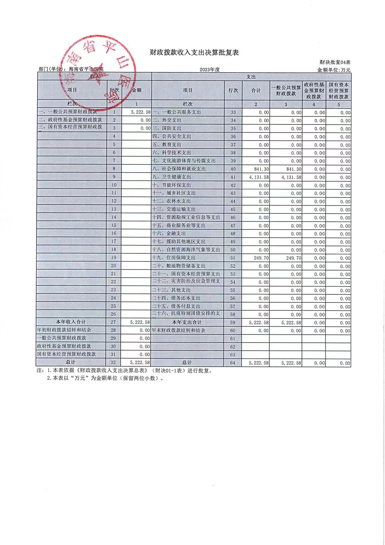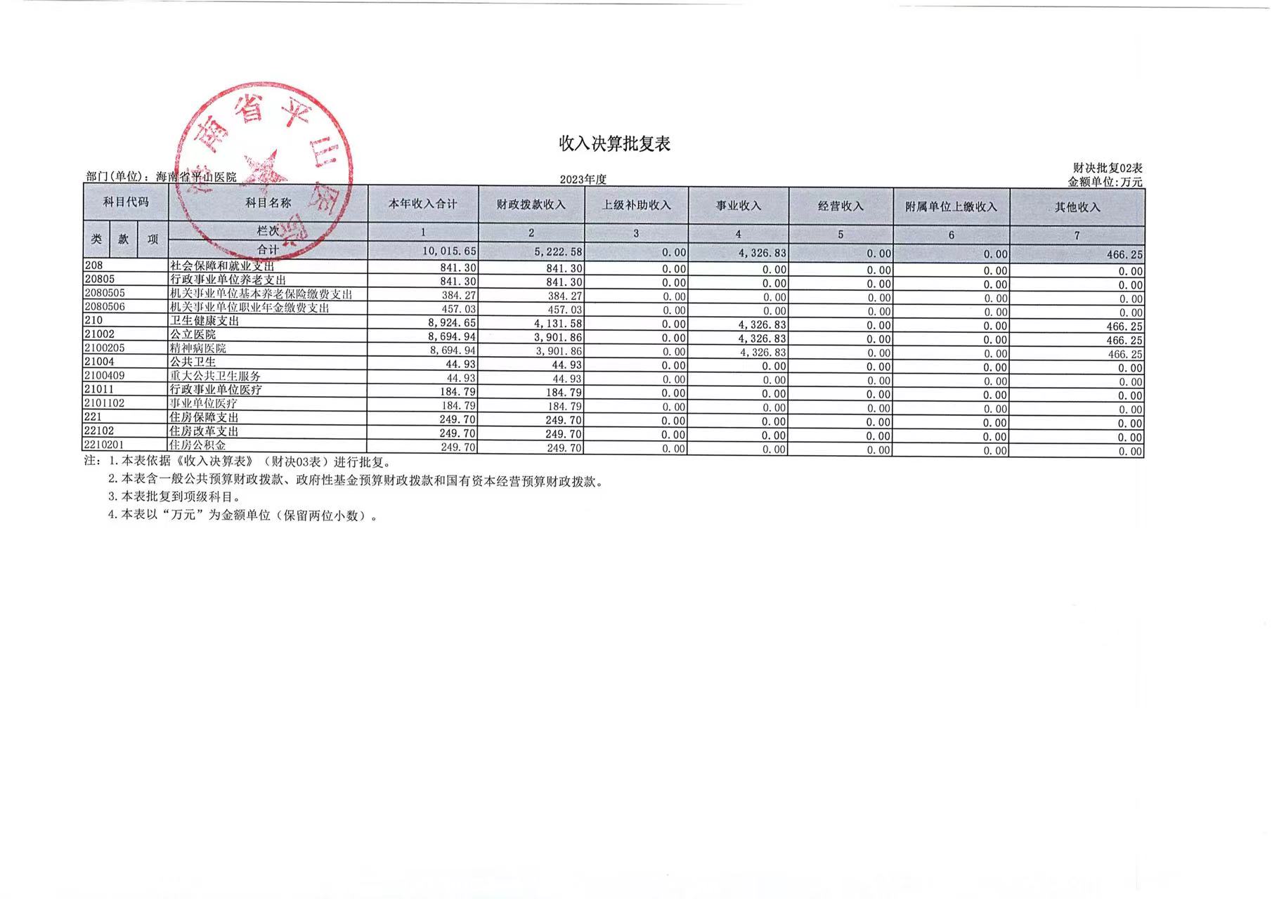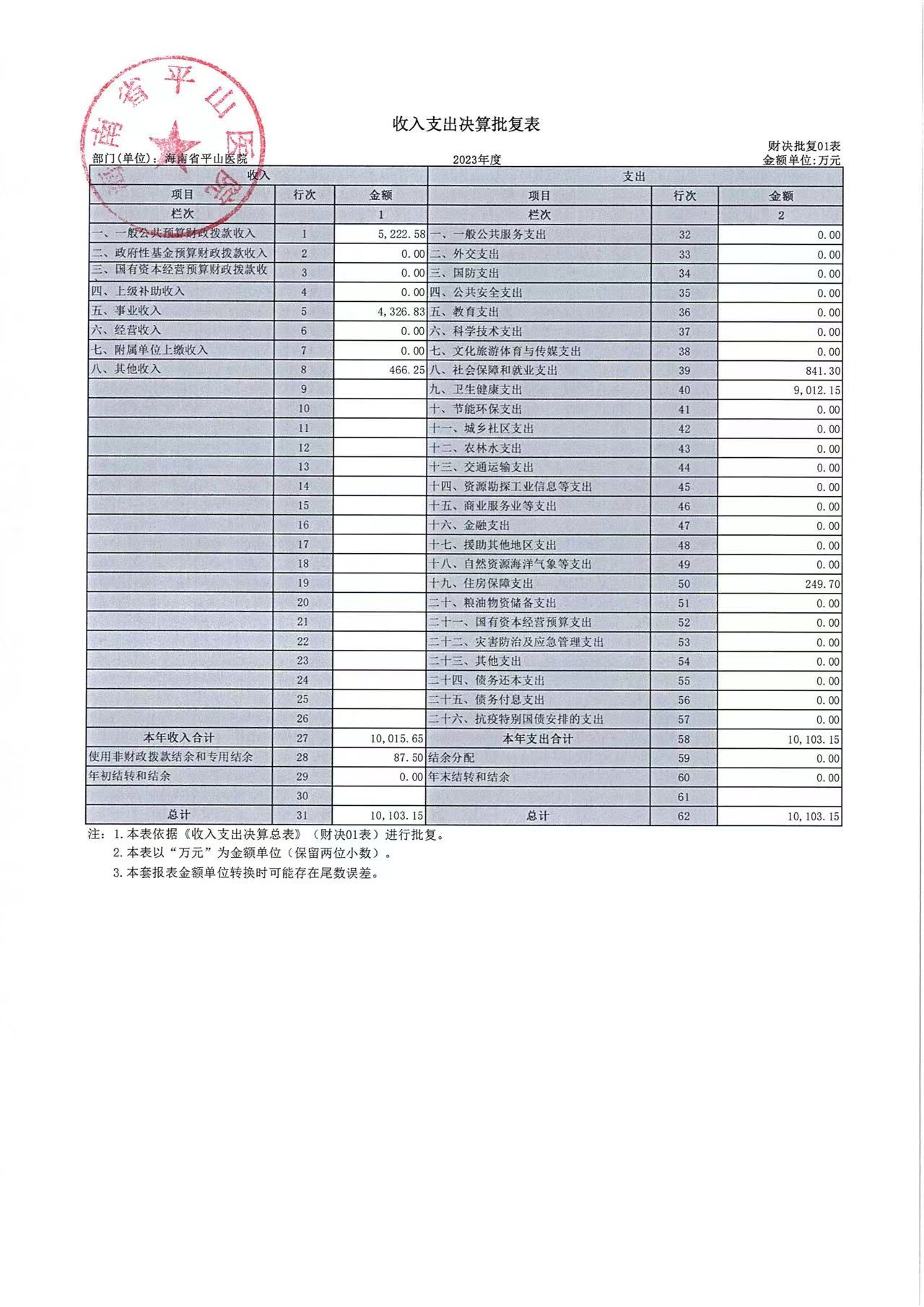 海南省平山医院2023年度部门决算公开报告