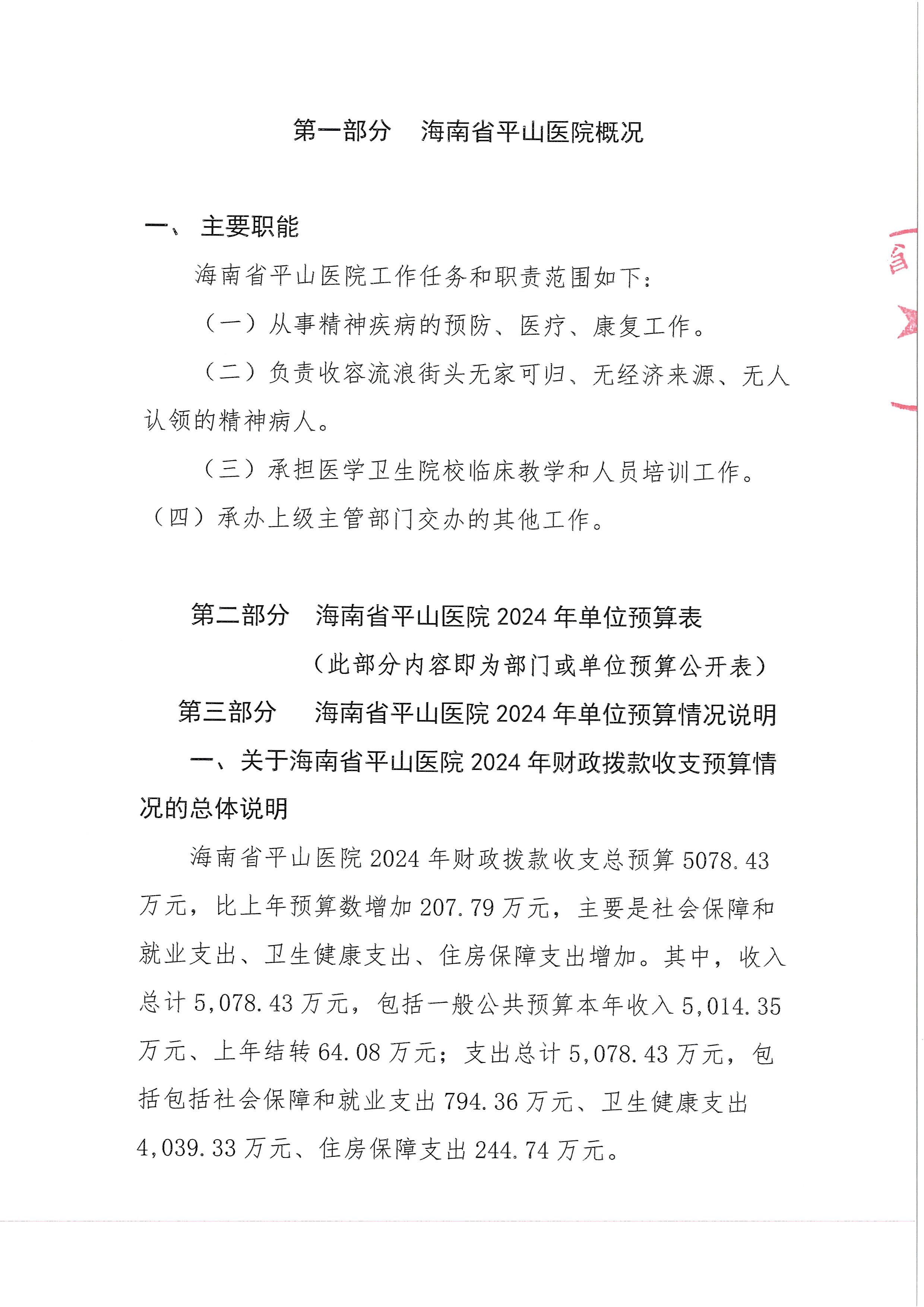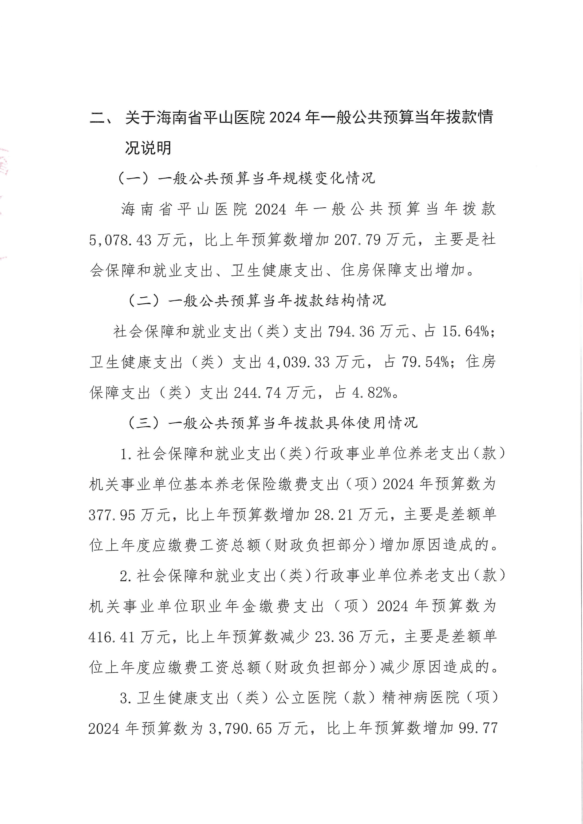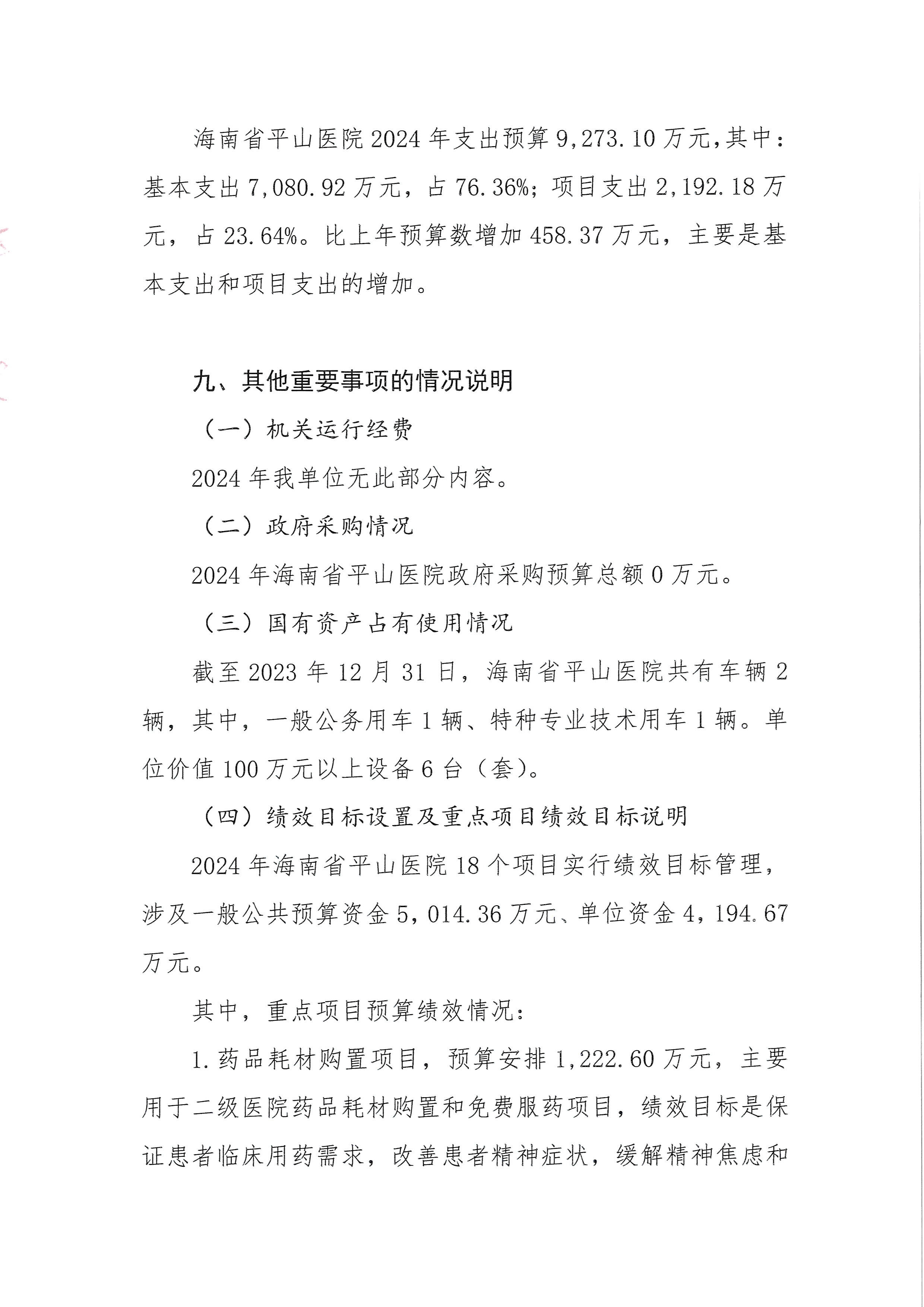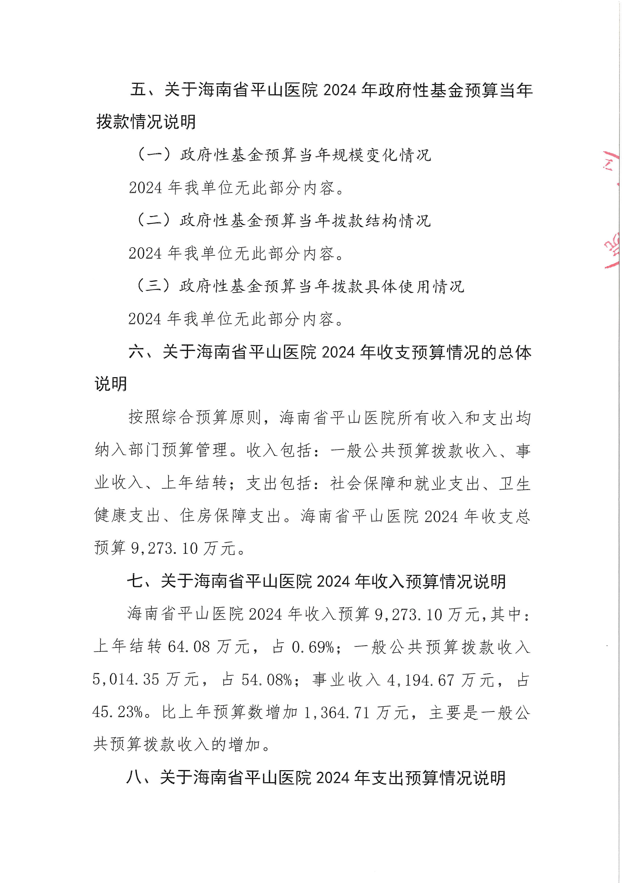 海南省平山医院2022年度部门决算公开报告(文字说明)