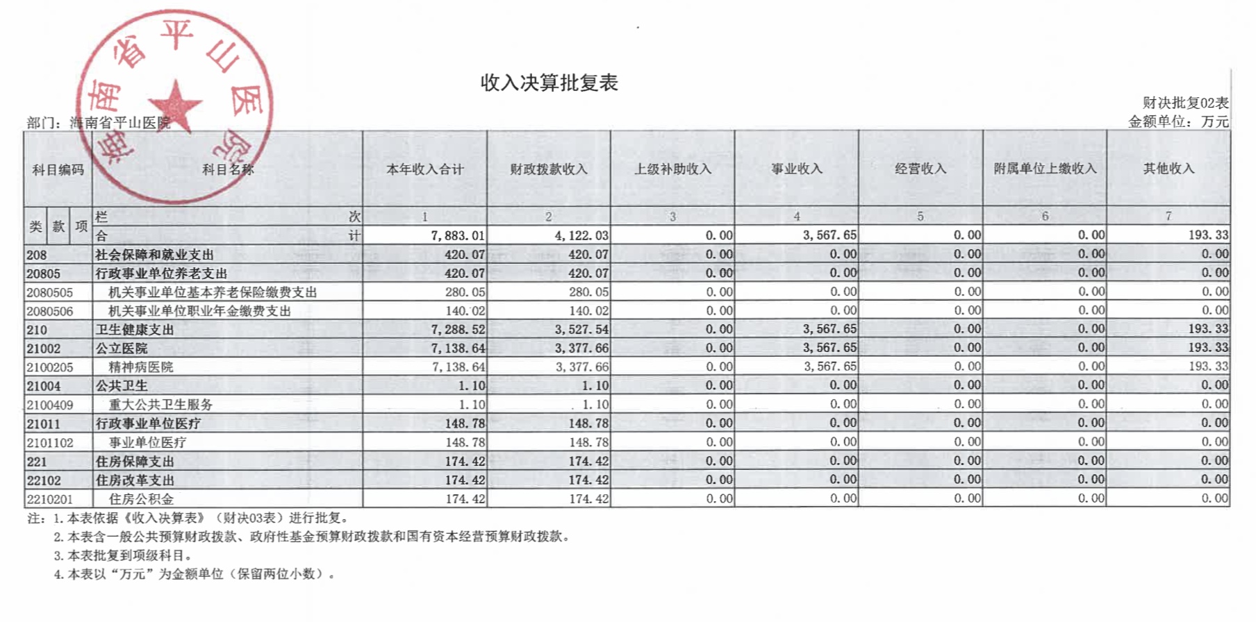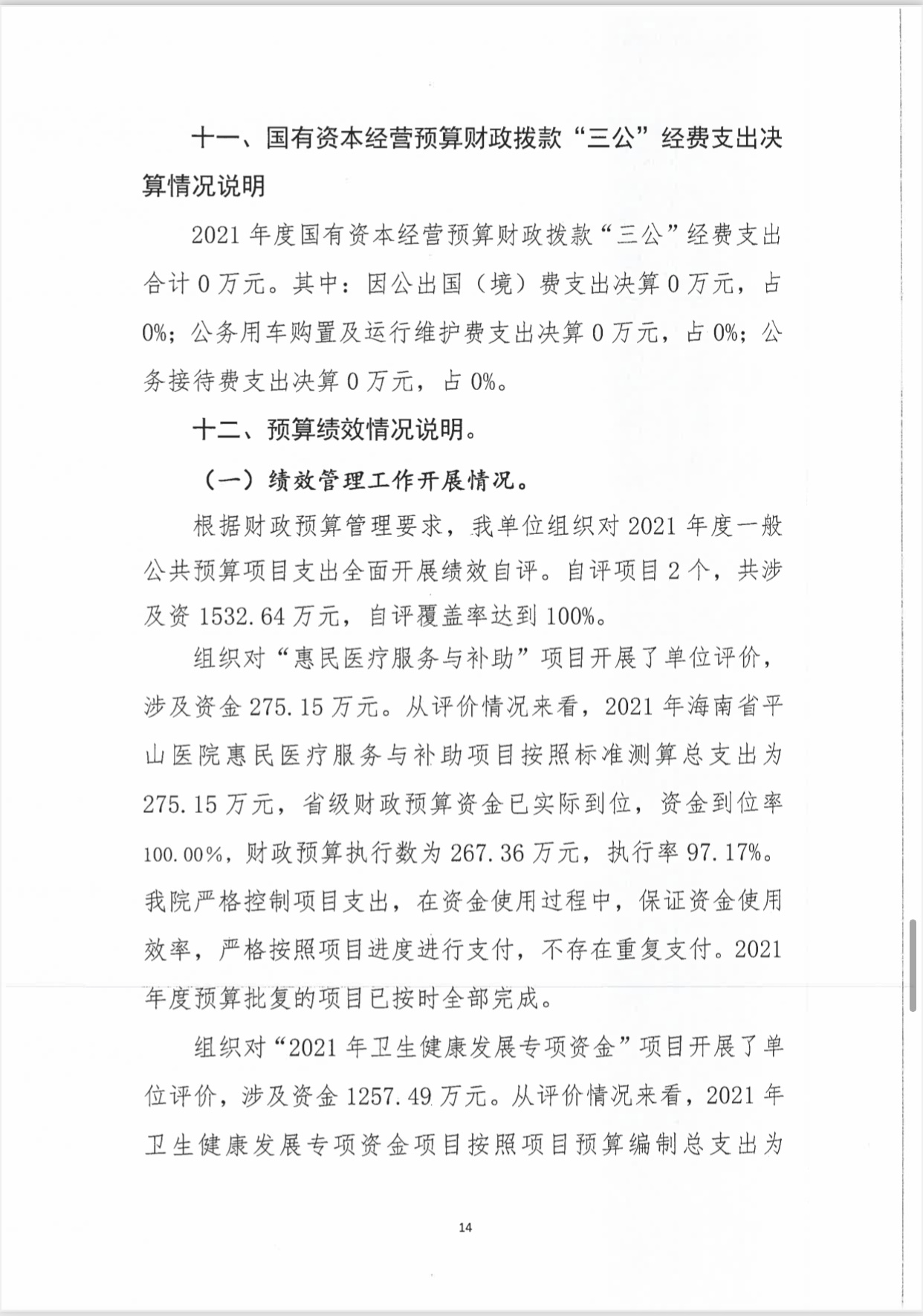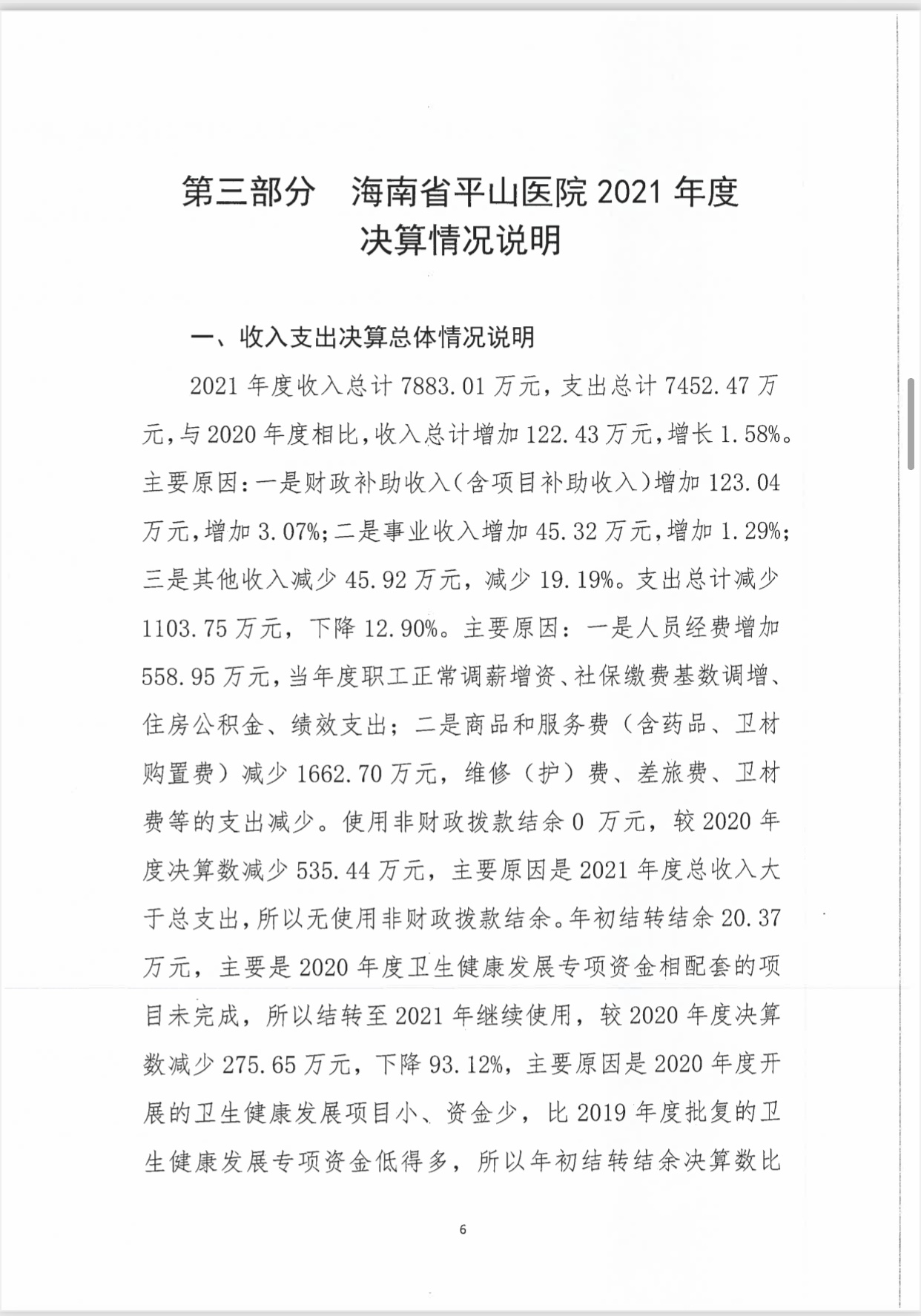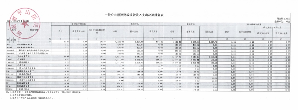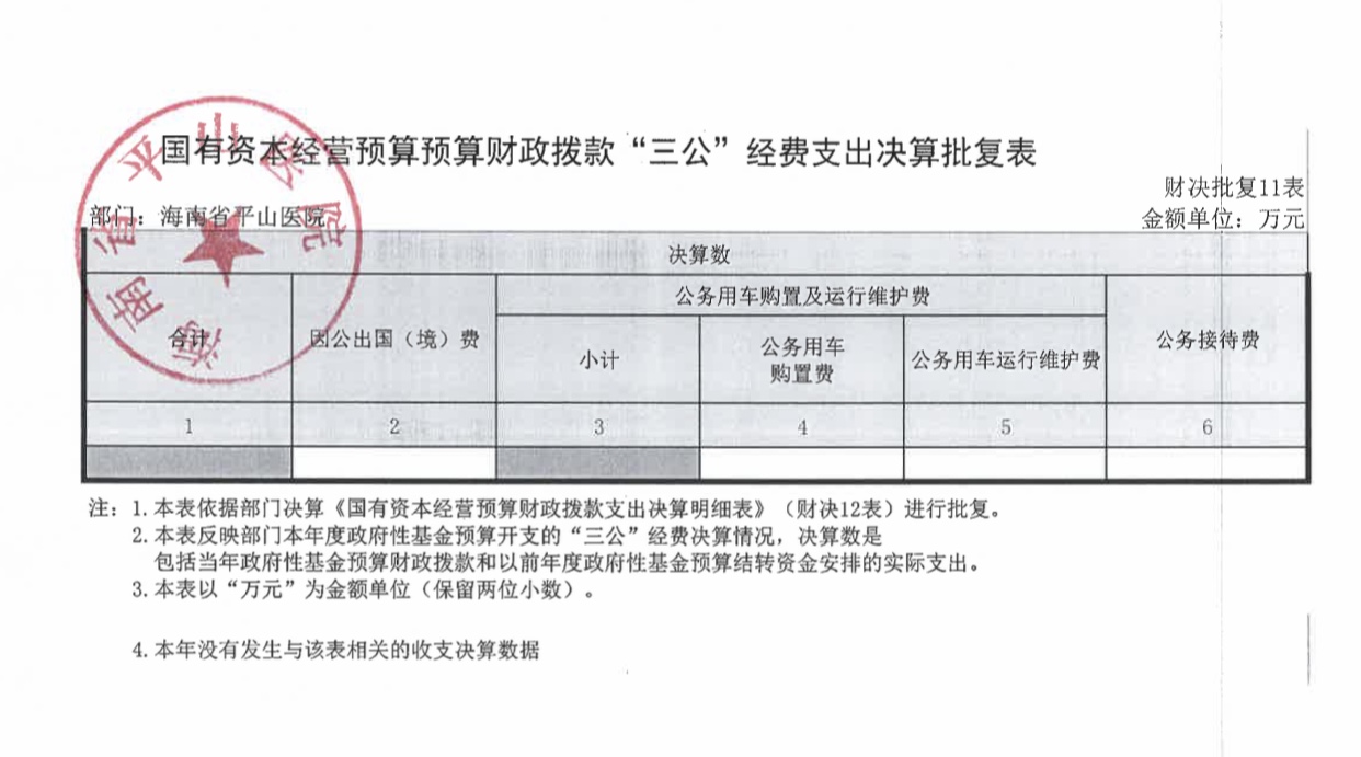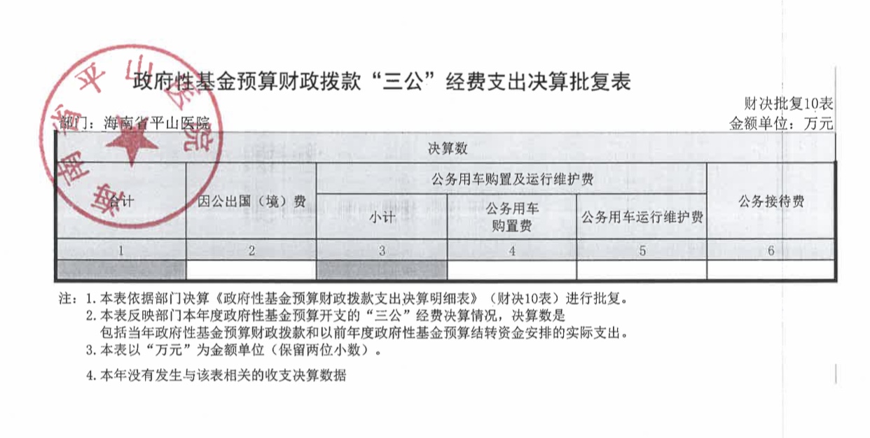 海南省平山医院2021年度决算报表公开文字说明