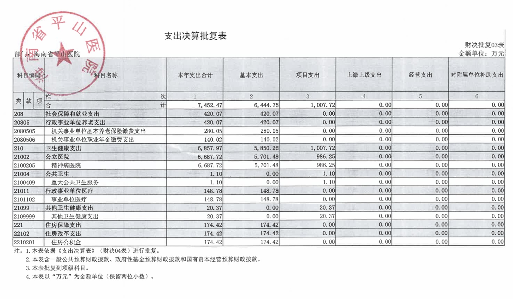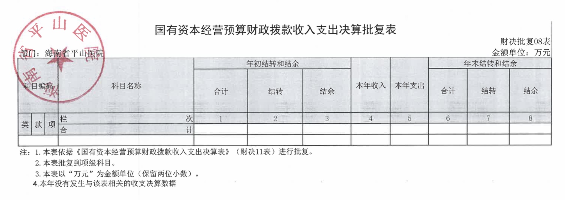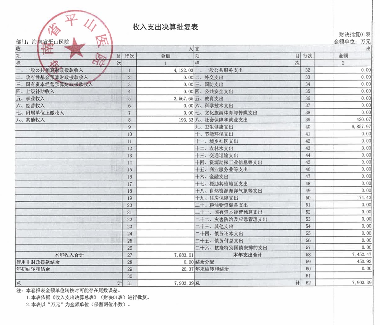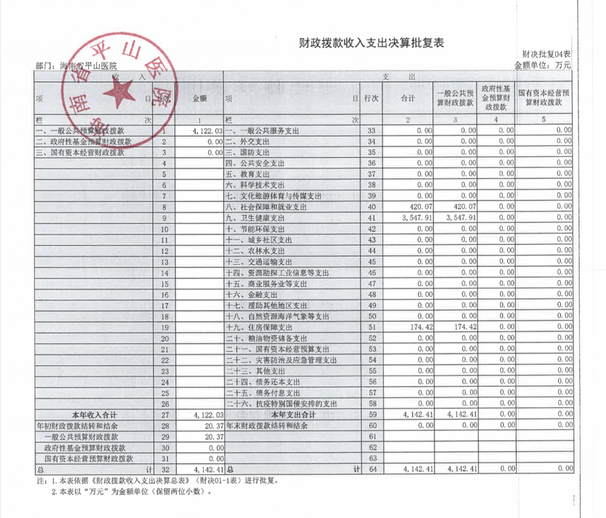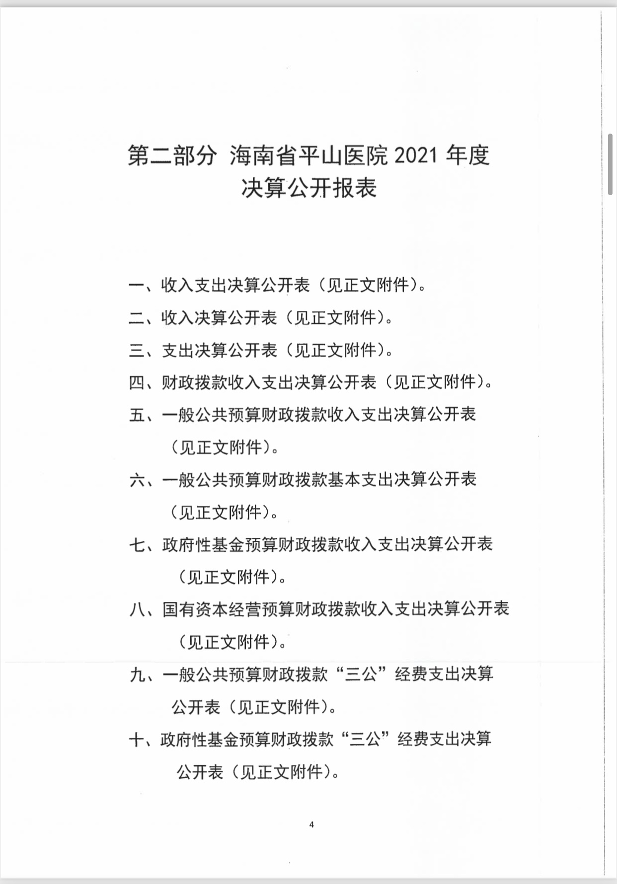 海南省平山医院2021年度决算报表公开文字说明