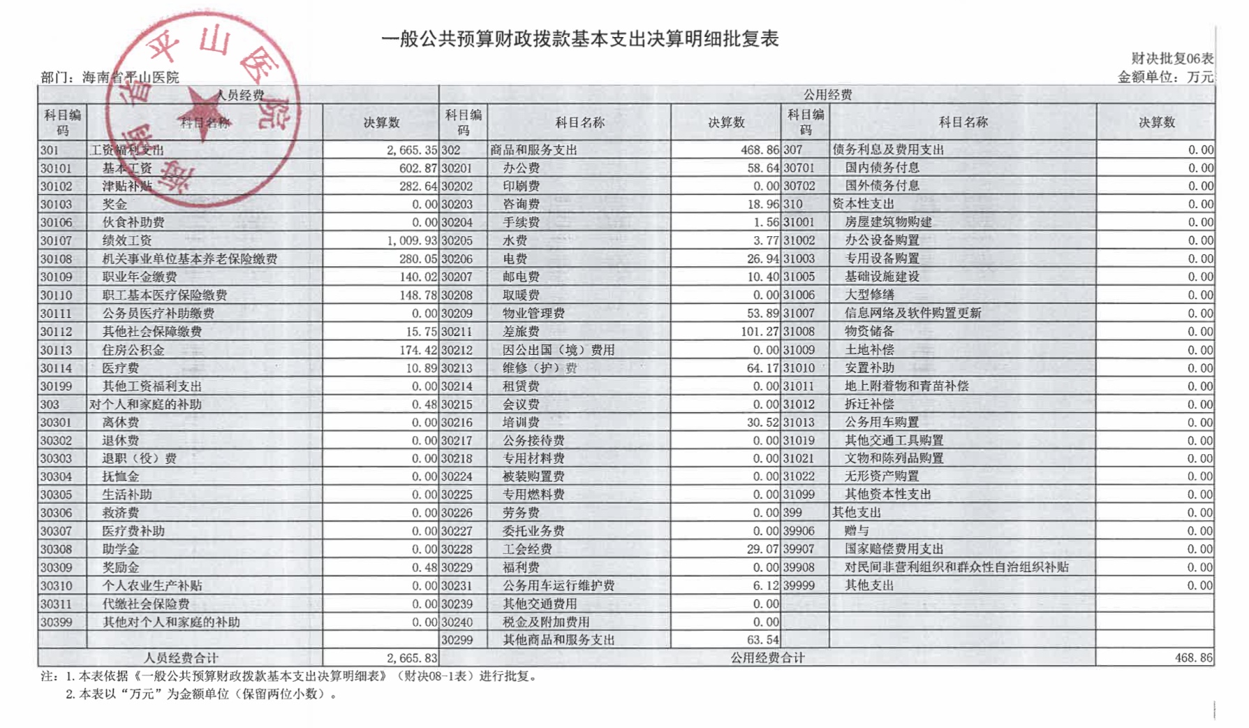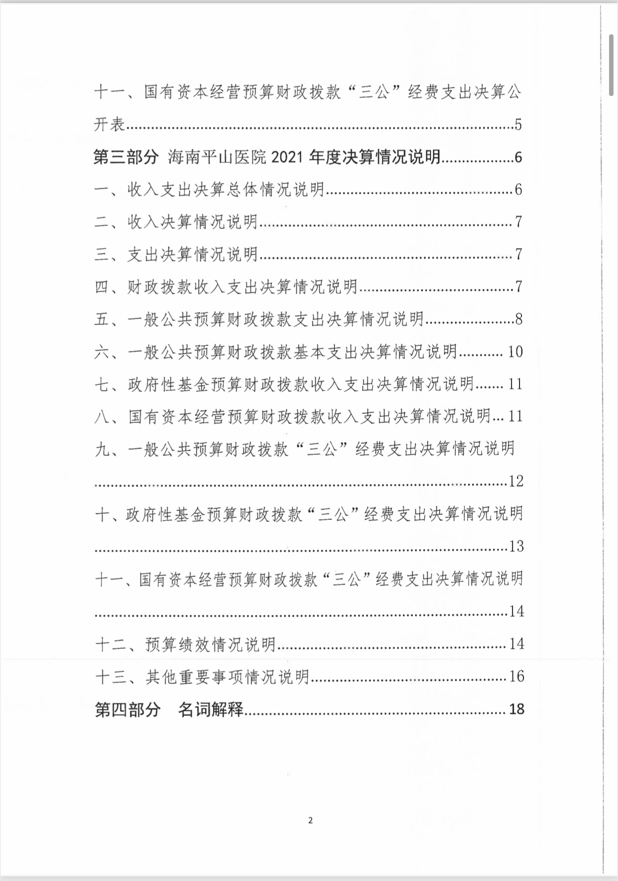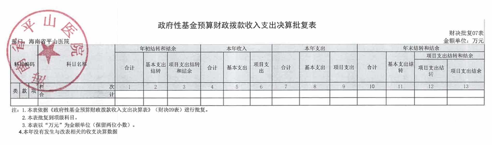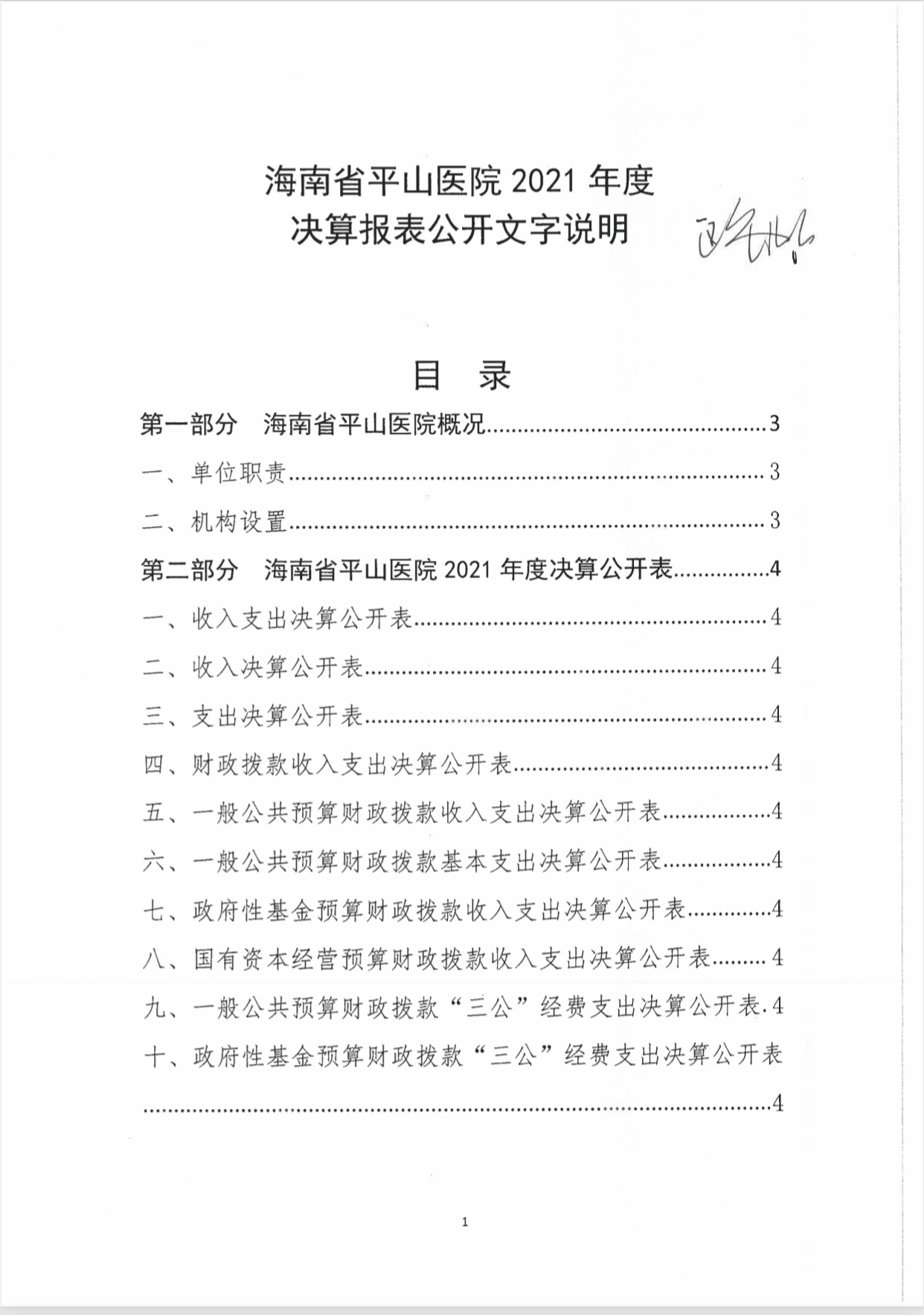 海南省平山医院2021年度决算报表公开文字说明