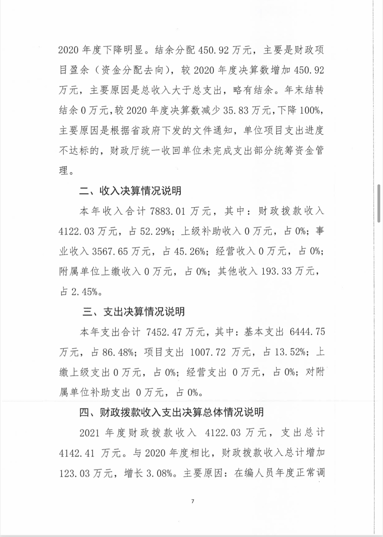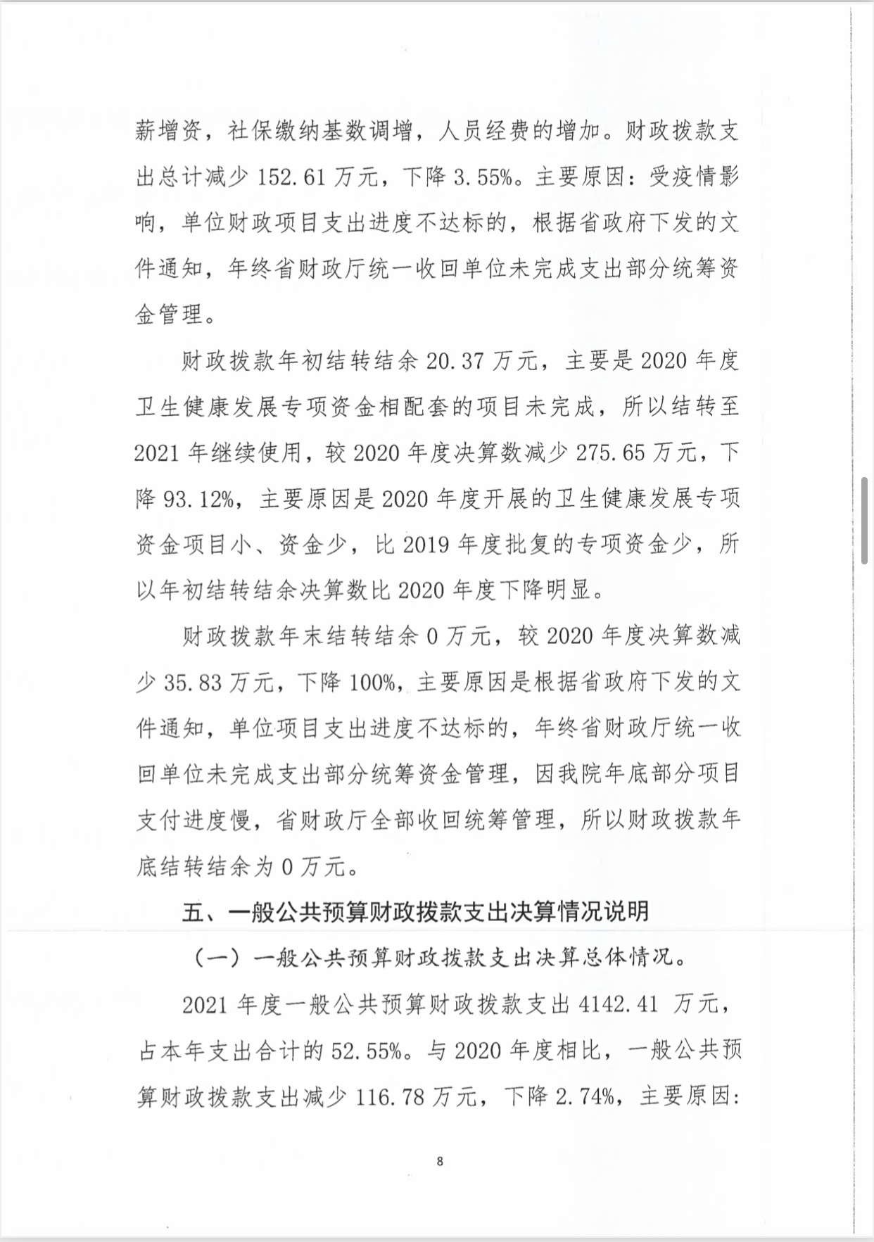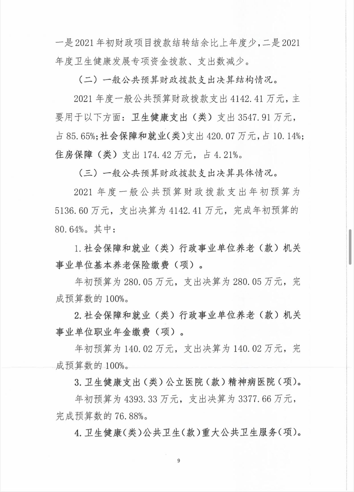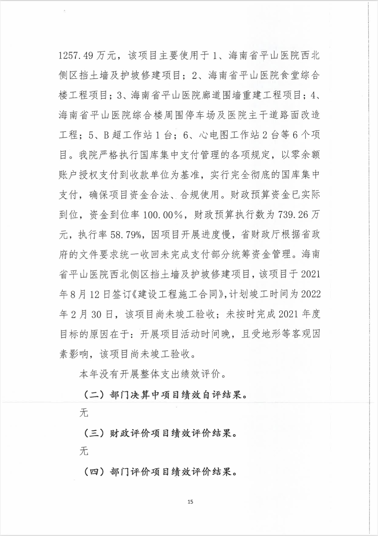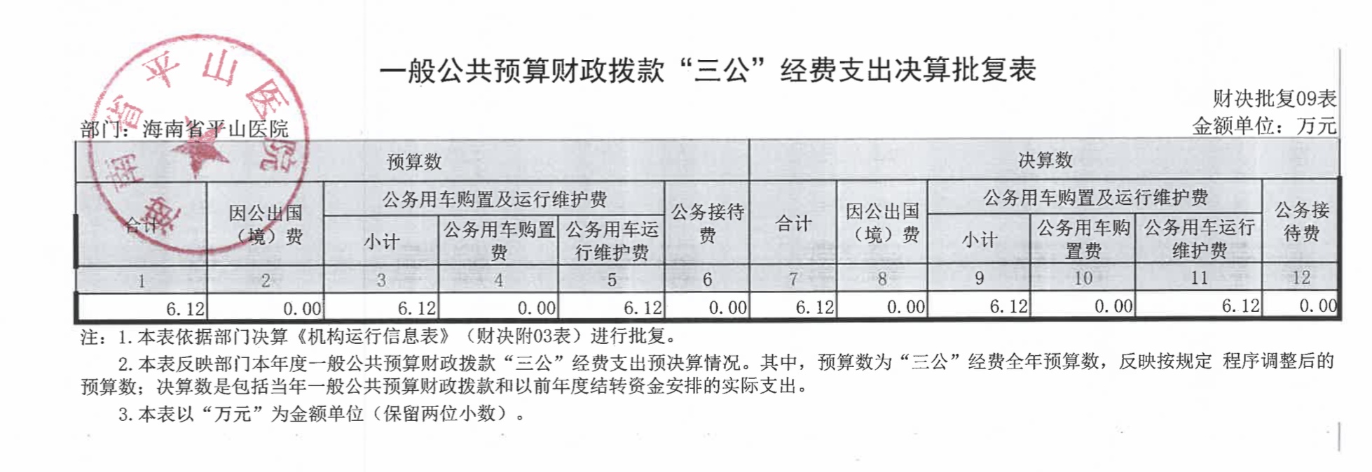 海南省平山医院2021年度决算报表公开文字说明