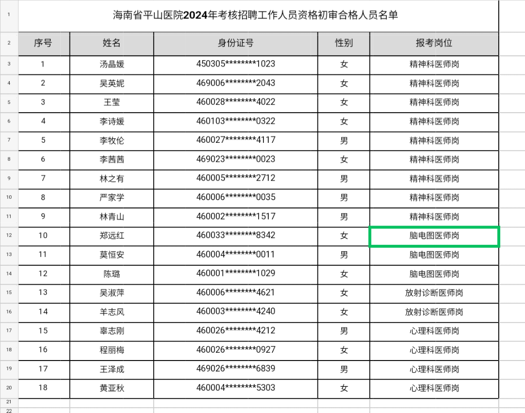 海南省平山医院2024年编外考核招聘急紧缺卫生专业技术人员公告(第10号)