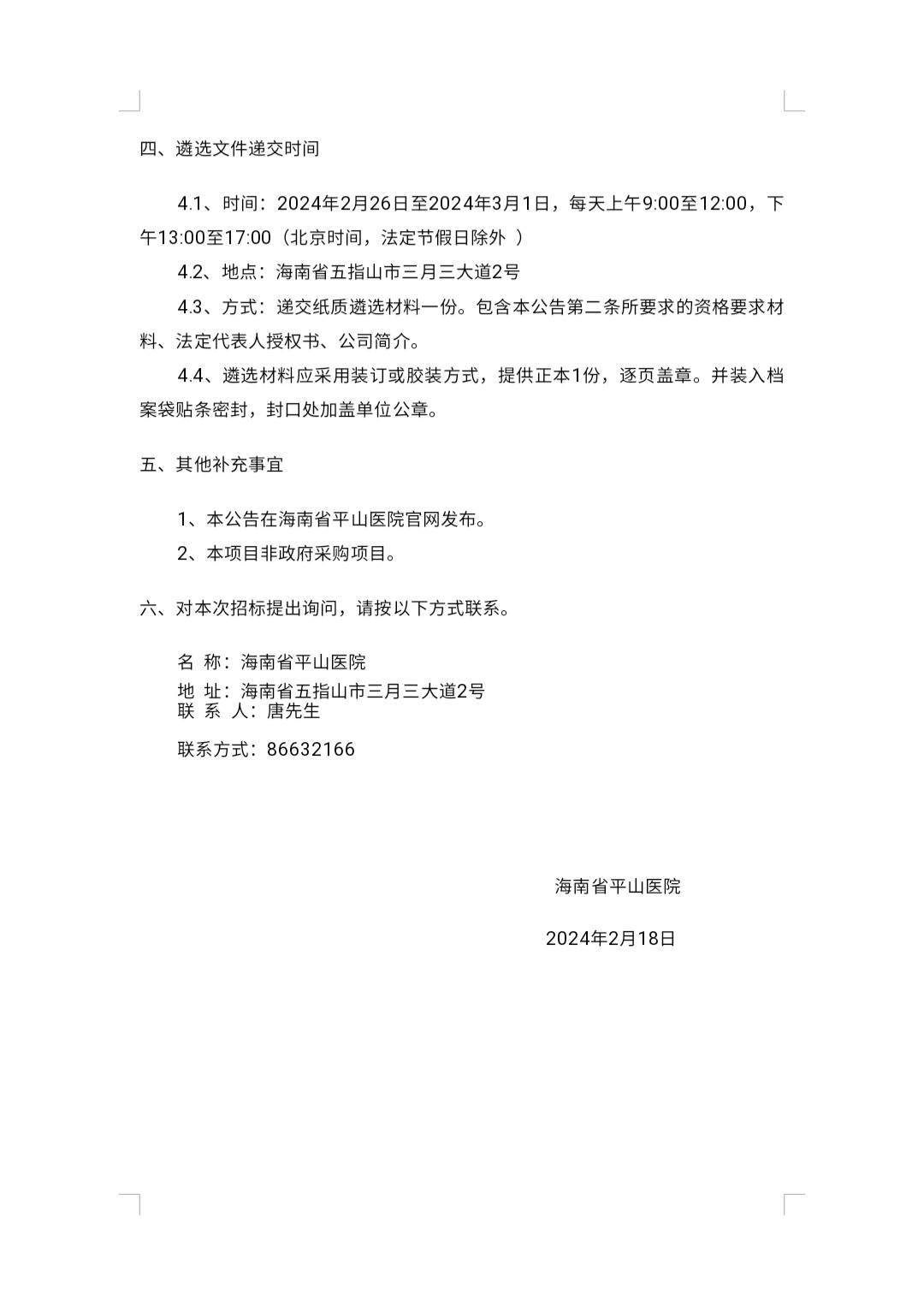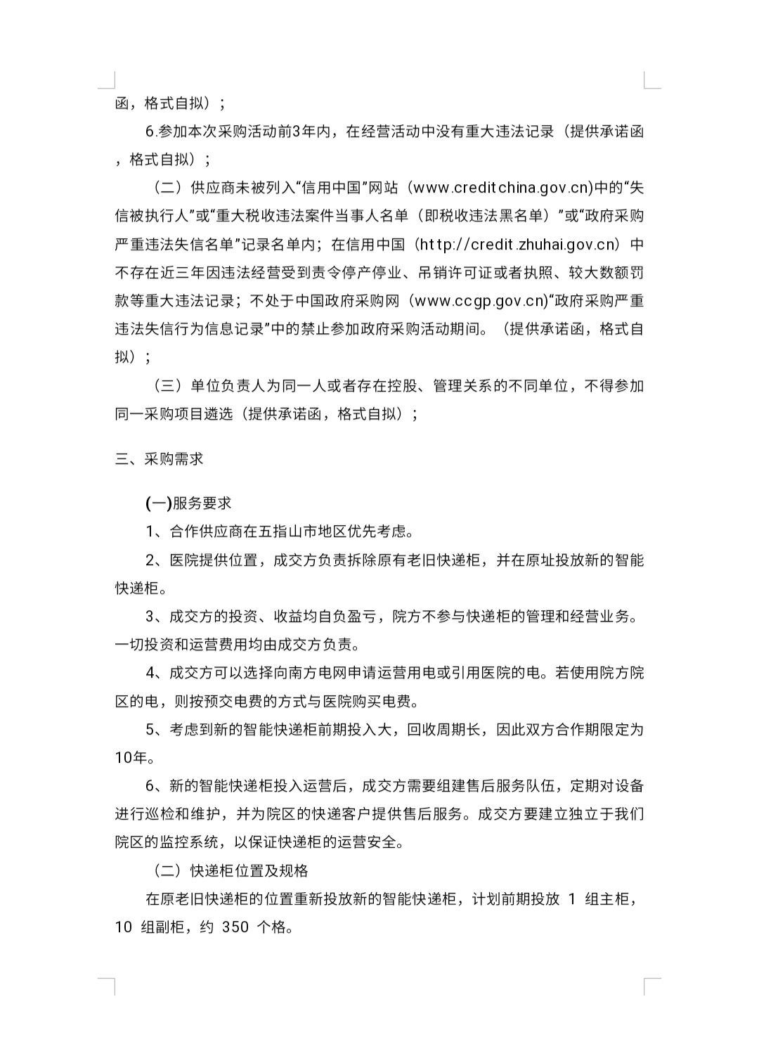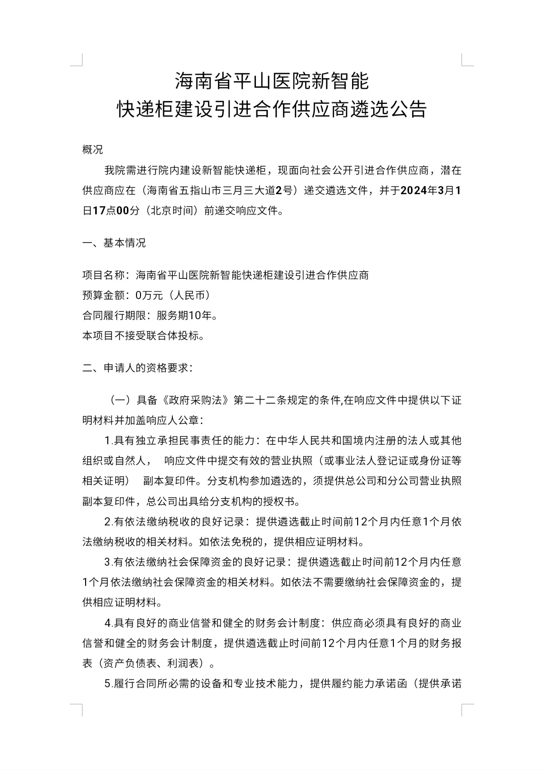 海南省平山医院新智能快递柜建设引进合作供应商遴选公告