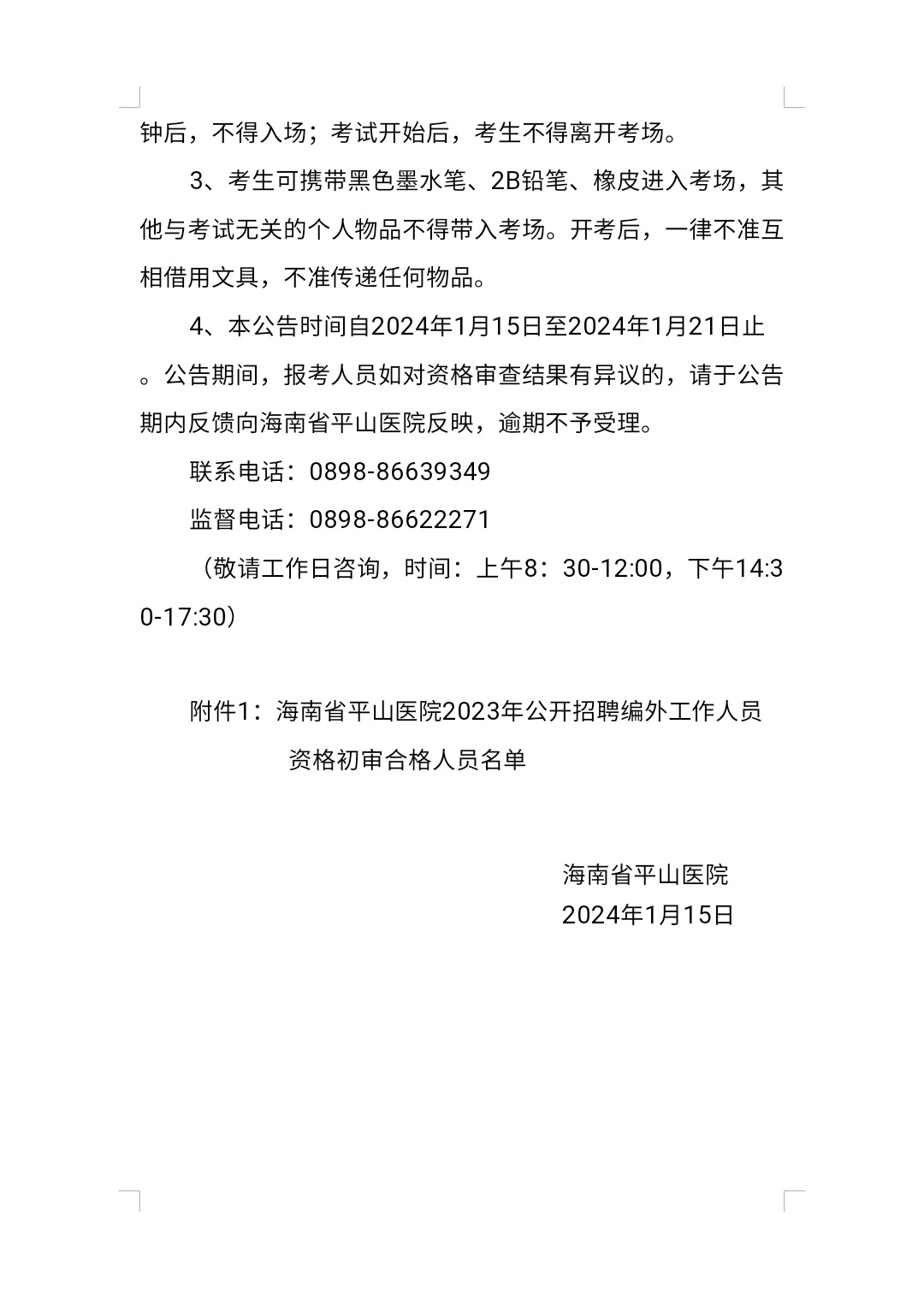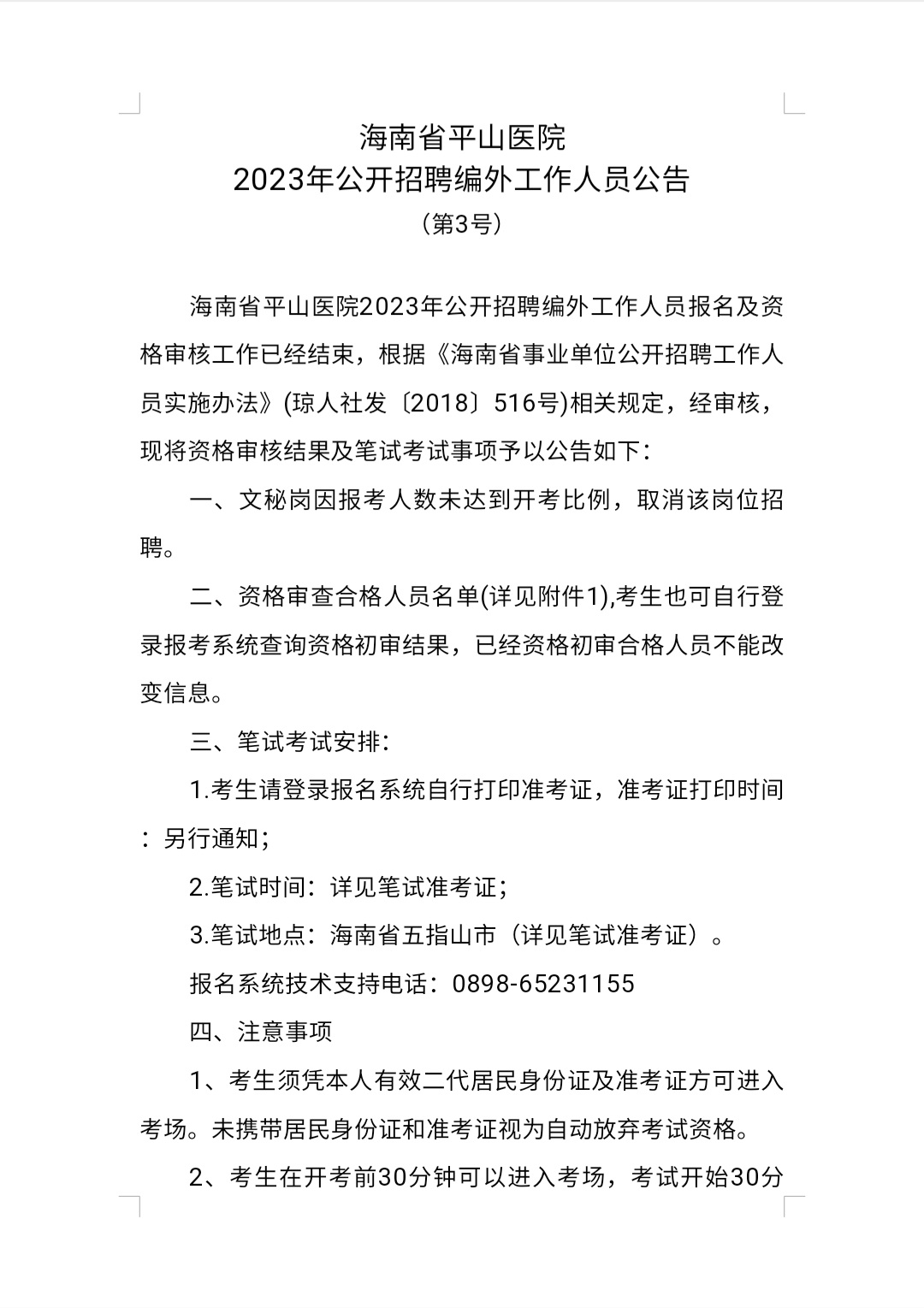 海南省平山医院2023年公开招聘编外工作人员公告(第3号)