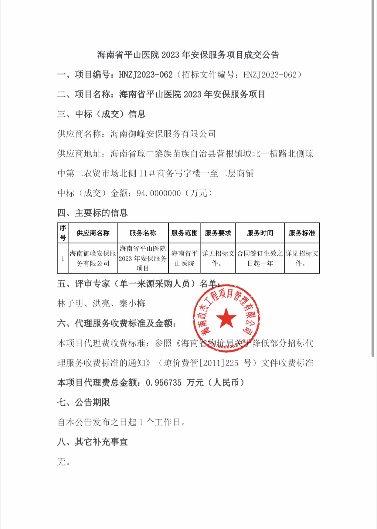 海南省平山医院2023年安保服务项目竞争性磋商公告