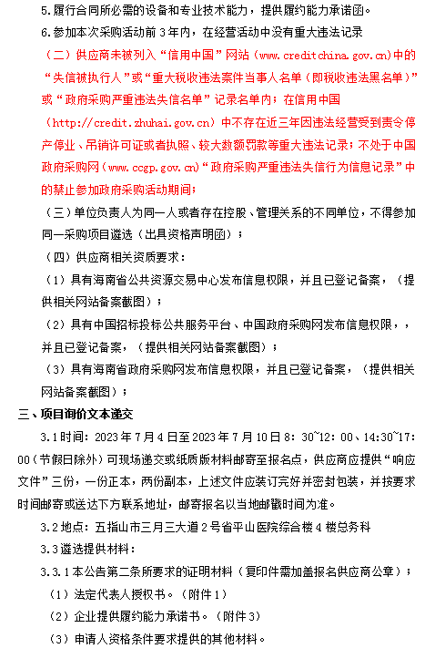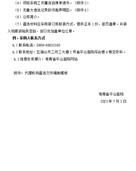 海南省平山医院招标代理机构年度合作单位遴选公告