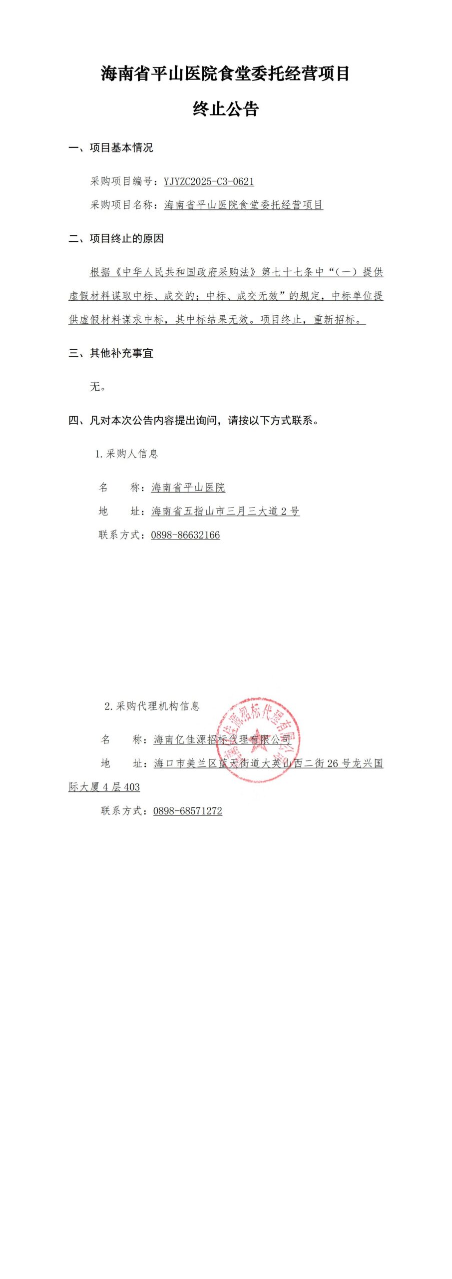 海南省平山医院2026年医疗责任保险项目(二次招标)-成交结果公告